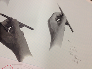 方眼の目盛りと鉛筆のトップ、ボトム厳密に。1mm以内を正確にする。タイトルBOX方眼インクより濃度下げ。