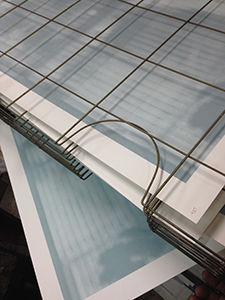 細い線の向きとスクリーンの糸の向きがそろうと出ないことになるので、今回は特別に45°に振って紗張りした。