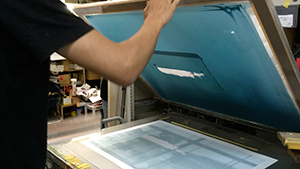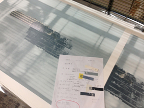 スクリーンの角度上、正位置に製版できず、機械で通すことができない。。。