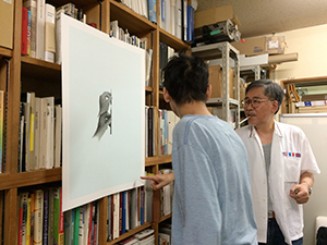 ブラインドの写真は当時の嵯峨美の研究室の風景とのこと。