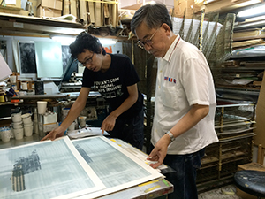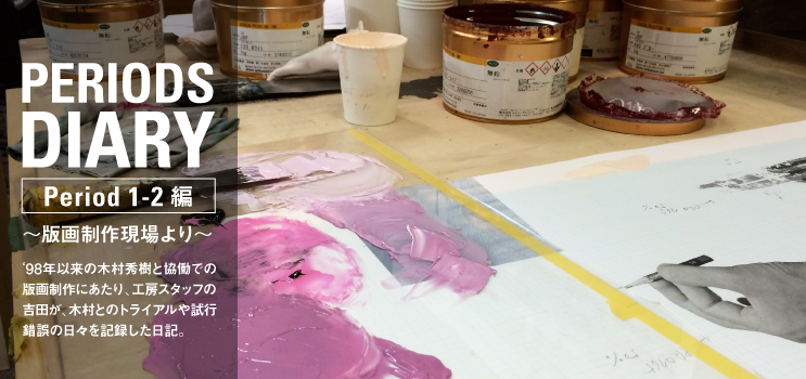 刷り位置左に30、上に20で最終版の色決め。水鳥のエンジでやってみたものを見て一言「強いな」。
