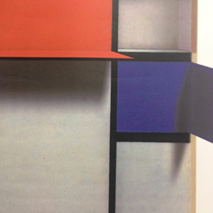 今回のモンドリアンのイメージは画像編集アプリケーションで加工されていて、2D上で色面が奥に行ったり、起き上がったようになっている。