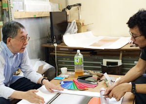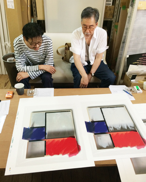 ベースになる作品画像が印刷された状態、データから現物になったものを見て反応している。