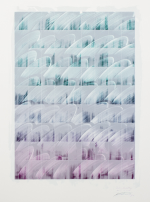 このシリーズはもともとタブローの仕事で、筆致のイメージとスキージで描かれた絵の具層で構成されている。