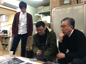何度も調整を繰り返す。サンプルと元のデータと刷り上がりを比較すると、どうしてもコントラストが高く黒々とした感じにならない。