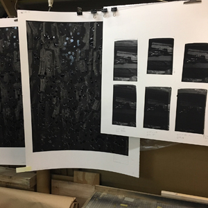その間、木炭のイメージを刷る。普通、印刷用の黒インクにも炭素の顔料が混ざっているが、そこにさらに炭素の粉を増量。