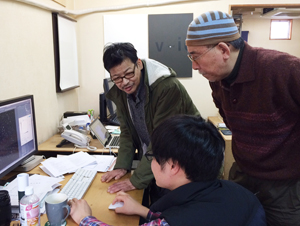 撮影された水滴の画像を元に何度もコンピュータ上でシミュレーションを行う。