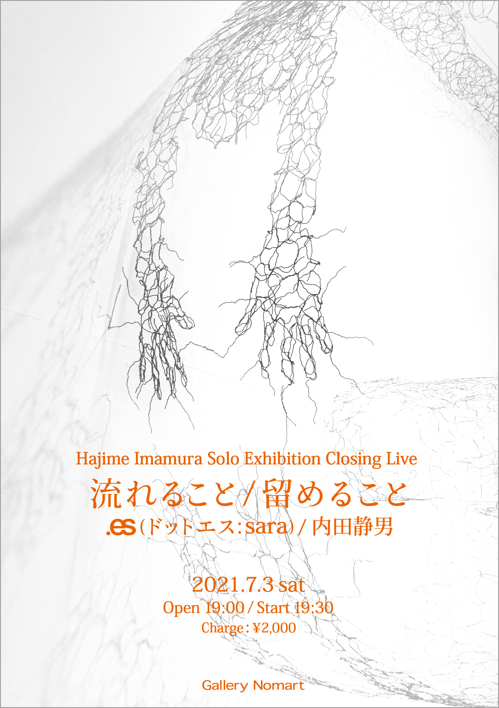 奇しくも、.es結成当初からアート&サウンドの深いコラボレーションを行ってきた美術作家・今村源の個展「流れること / 留めること」会場で新たな「.es」としての第一弾のライブを開催いたします。