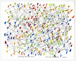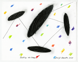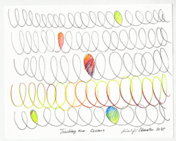 colored pencil, water-resistant felt-tip pen, paper