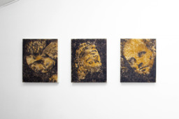 set of 3 works, パネル, 綿, 布, 鉄錆 (赤錆・黒錆)