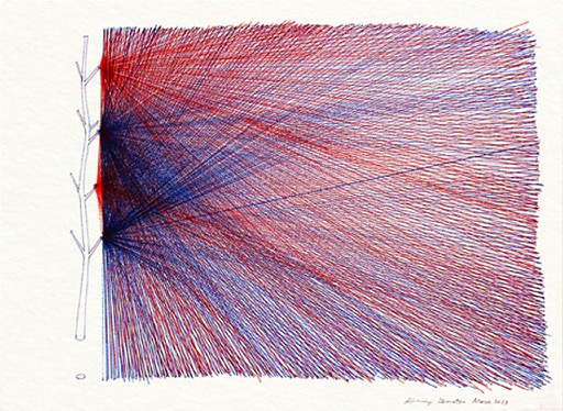 無数の線、エネルギーの触れ合い、重なり合い、交差/交錯している空間がある。生命力をもつ枝の先から放出されるエネルギーは、人間の手の指の先から放出されるエネルギーとどう違うのか?